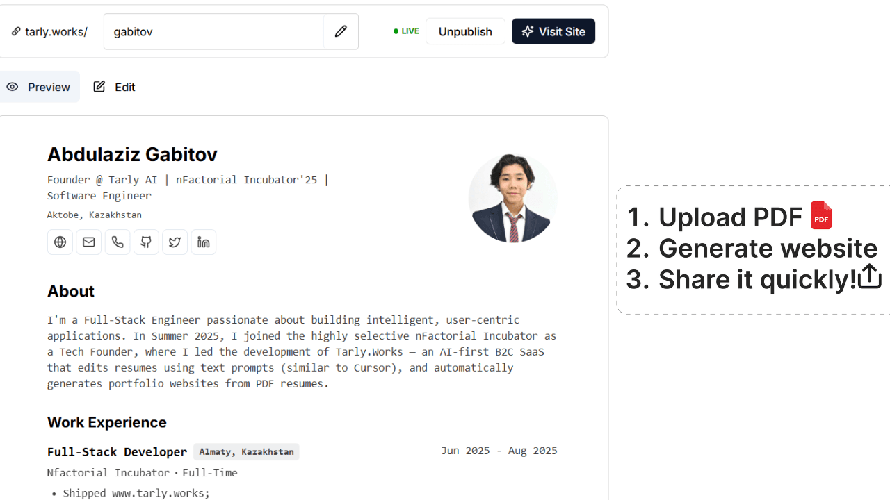 June 2, 2025Cursor for Resumes; get a Personal website in 30 seconds.